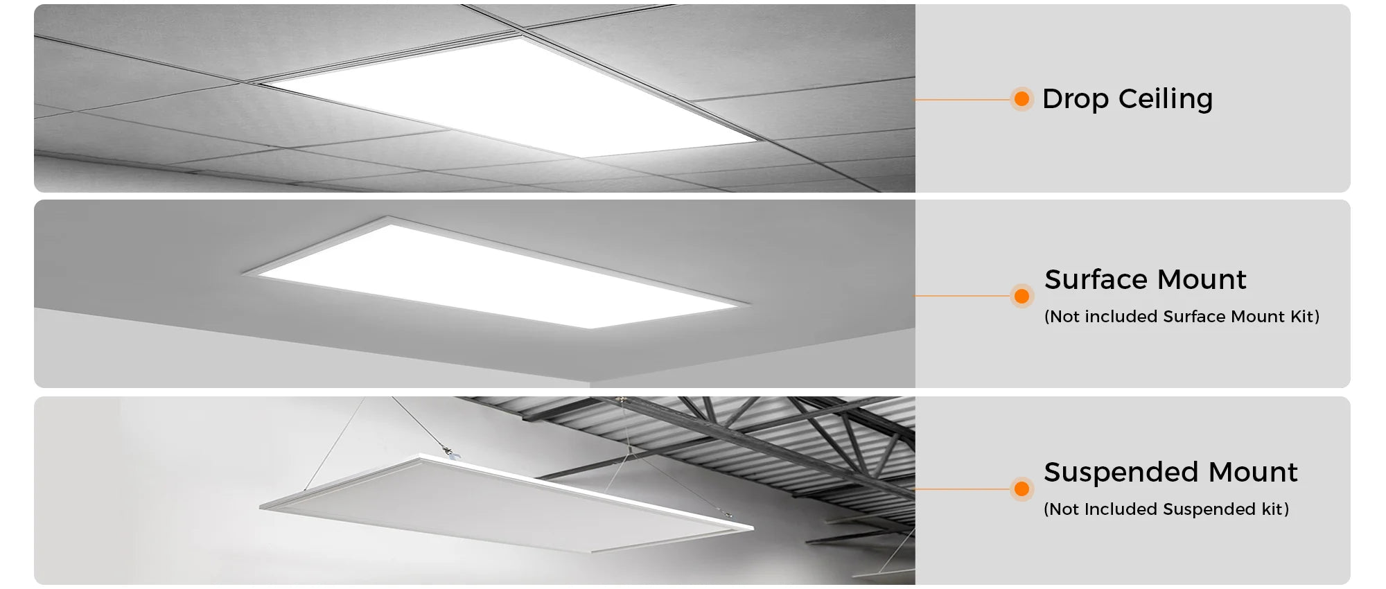 Easily switch between warm (3000K), neutral (4000K), and cool (5000K) lighting to suit any environment or mood. This adjustable color temperature feature ensures optimal comfort and versatility for both residential and commercial spaces.