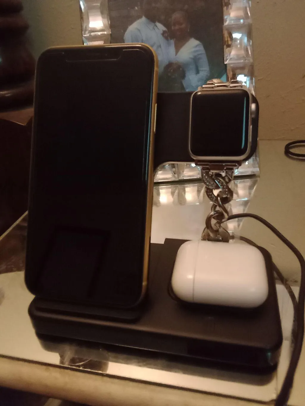 Simultaneously power your iPhone, Apple Watch, and Airpods/Pro with ComiLED's Rapid 3-in-1 Wireless Charging Stand.