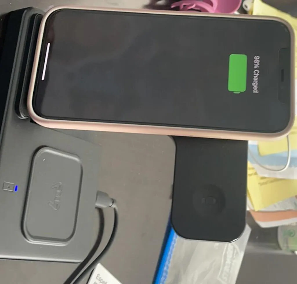 Make sure there are no metal objects, such as coins, keys, or magnetic accessories between your device and the charging pad. These can interfere with the wireless connection, cause the charger to heat up, and significantly slow down charging efficiency.